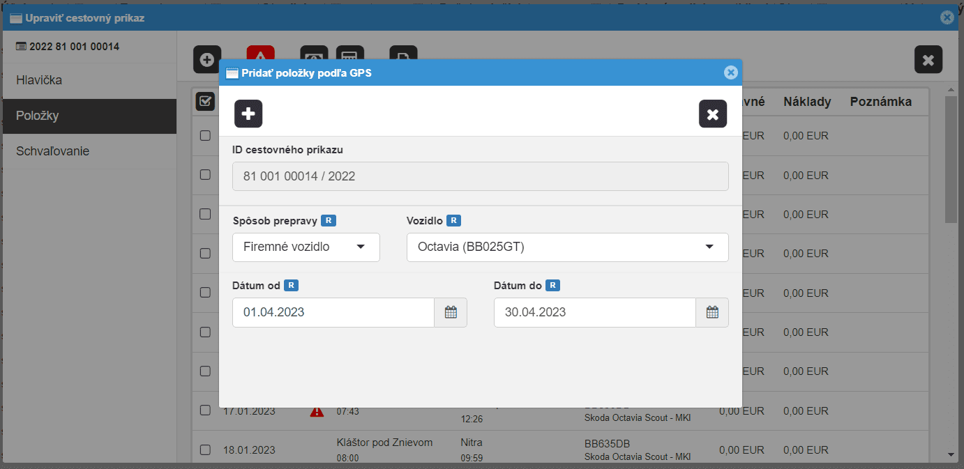 Generovanie položiek podľa GPS