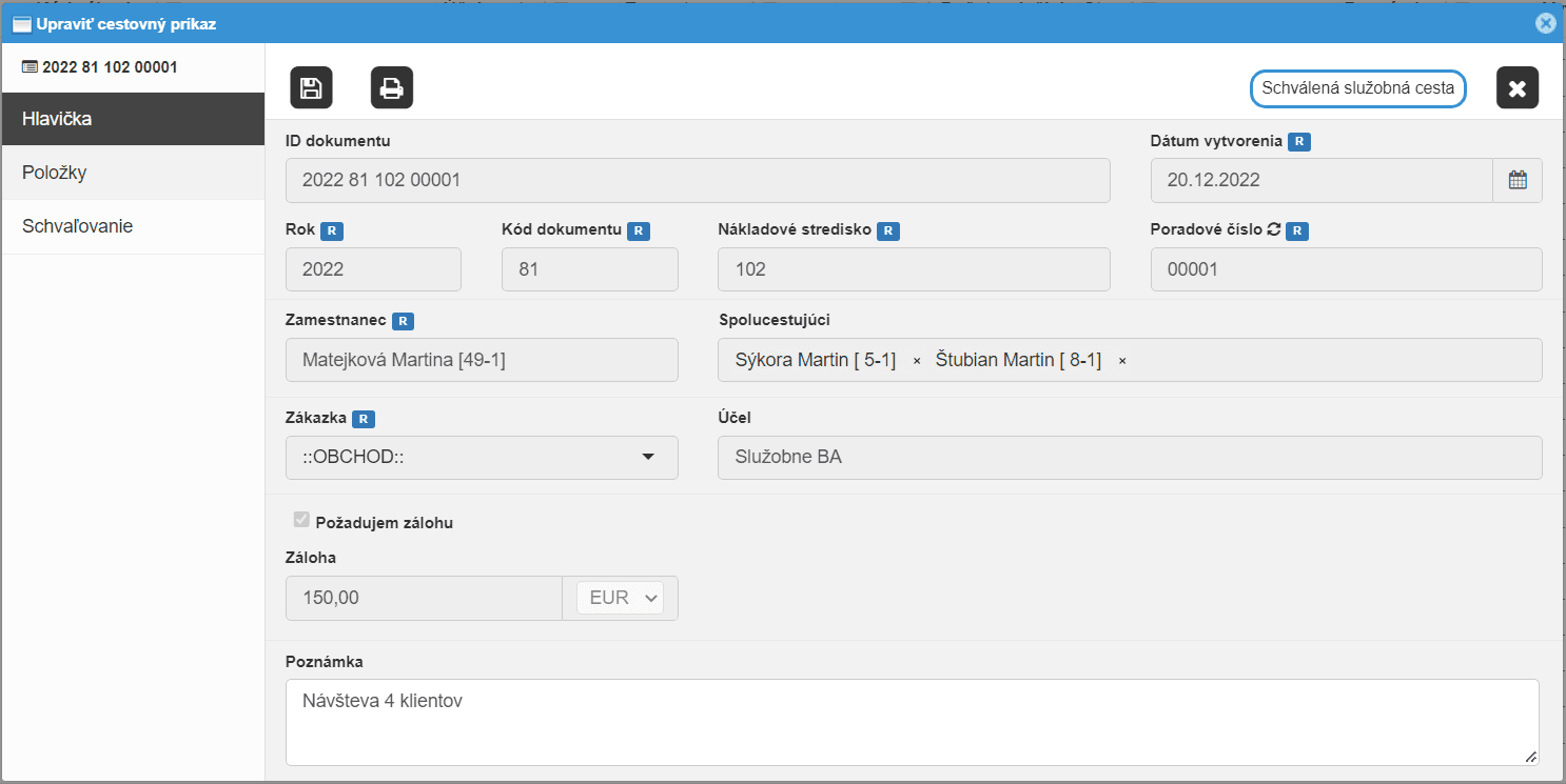 Cestovný príkaz na pár klikov